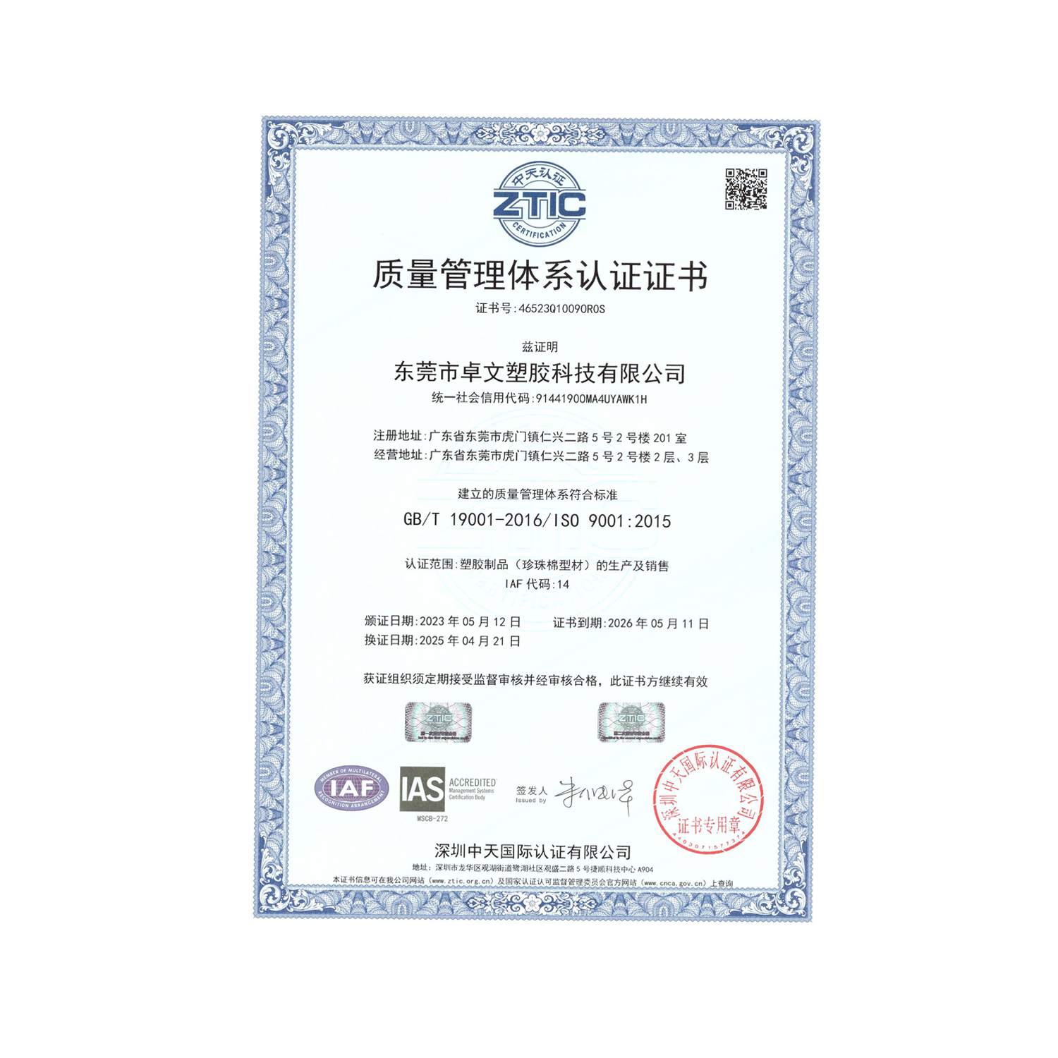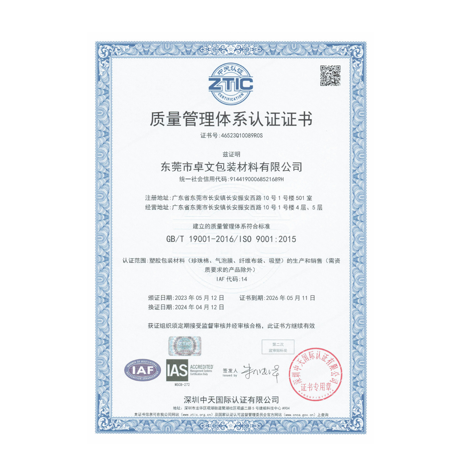 卓文包裝始終堅(jiān)持“永爭(zhēng)第一,用高品質(zhì)精品創(chuàng)造富裕生活和喜悅?cè)松钡慕?jīng)營(yíng)理念,始終追求產(chǎn)品價(jià)值和客戶(hù)利益“最優(yōu)化”,為最終實(shí)現(xiàn) “多贏(yíng)”而努力。公司現(xiàn)已擁有布料自動(dòng)裁切設(shè)備、布袋車(chē)縫設(shè)備、硅橡膠擠出設(shè)備、自動(dòng)織帶設(shè)備、全自動(dòng)吹膜復(fù)合設(shè)備、印刷設(shè)備、自動(dòng)制袋設(shè)備、吸塑成型設(shè)備、EPE發(fā)泡成型設(shè)備、EVA雕刻設(shè)備、PU海綿異型切割設(shè)備以及先進(jìn)檢測(cè)設(shè)備等,具備每日制袋200萬(wàn)個(gè)以上、EPE日發(fā)泡20噸以上、異型產(chǎn)品日產(chǎn)50萬(wàn)個(gè)以上的綜合生產(chǎn)能力。 卓文包裝一直將產(chǎn)品的設(shè)計(jì)和生產(chǎn)工藝研發(fā)放在首位,每年從利潤(rùn)額中提取固定比例用于研發(fā)投入,公司擁有一支具有數(shù)十年經(jīng)驗(yàn)豐富、技術(shù)精湛的工程研發(fā)團(tuán)隊(duì),他們專(zhuān)注產(chǎn)品的設(shè)計(jì)研發(fā)和生產(chǎn)流程優(yōu)化,為公司產(chǎn)品的卓越品質(zhì)和高效生產(chǎn)奠定扎實(shí)的基礎(chǔ)。卓文包裝一直注重內(nèi)部質(zhì)量管理體系的構(gòu)建,從產(chǎn)品的設(shè)計(jì)、原材料的導(dǎo)入、新工藝技術(shù)應(yīng)用、生產(chǎn)檢測(cè)到銷(xiāo)售與服務(wù)都遵循一套科學(xué)嚴(yán)密的管控流程。公司已通過(guò)ISO 9001:2015質(zhì)量管理體系認(rèn)證、ISO 14001:2015環(huán)境管理體系認(rèn)證、全球回收GRS認(rèn)證、第一類(lèi)醫(yī)療器械資質(zhì)認(rèn)證,且所有原材料均已通過(guò)SGS檢測(cè)、符合ROHS國(guó)際標(biāo)準(zhǔn),公司產(chǎn)品榮獲多項(xiàng)實(shí)用新型專(zhuān)利及新型高分子材料發(fā)明專(zhuān)利證書(shū)。